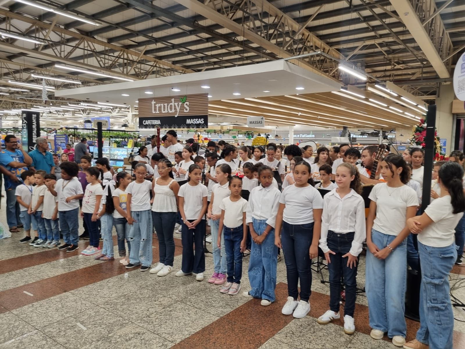Assessoria - A chegada do Papai Noel no Comper do CPA I, em Cuiabá, envolveu os clientes na magia do Natal. O 'Bom Velhinho' foi recebido com festa, na tarde deste sábado (22). O evento contou com a apresentação do coral Flauta Mágica, brincadeiras, distribuição de brindes, pipoca e algodão doce.