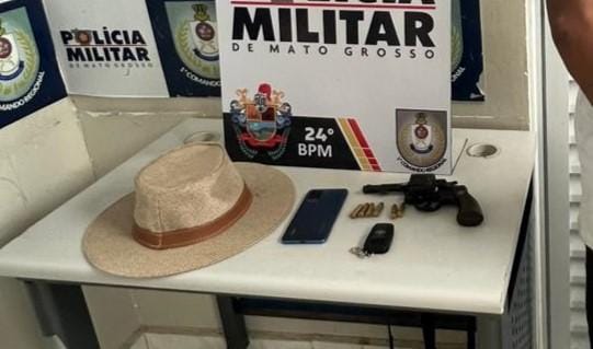 Durante a busca veicular, os militares localizaram e apreenderam um revólver calibre .38 com seis munições. Ao ser identificado, os policiais constataram inúmeras passagens criminais, desde 2014, por ameaça, roubo, furto, tráfico de drogas, porte ilegal de arma de fogo e perturbação da tranquilidade. O homem foi conduzido à delegacia para registro do boletim de ocorrência. A vítima, uma mulher de 55 anos, foi acionada para comparecer à unidade prisional.