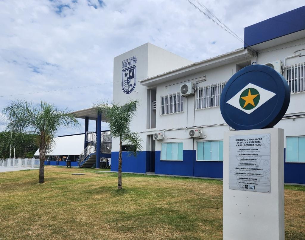 O Governo de Mato Grosso entregou a reforma e ampliação da Escola Estadual Cívico Militar Virgílio Corrêa Filho, na manhã desta segunda-feira (13), no município de Nova Mutum (a 240km de Cuiabá).