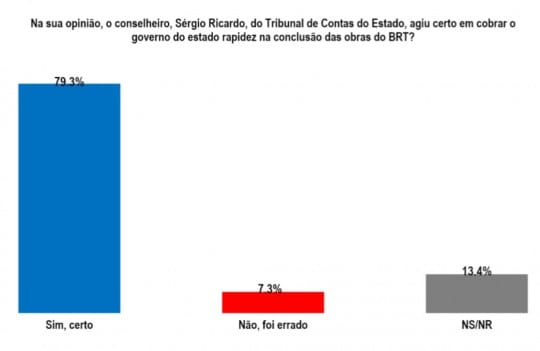 As ações de fiscalização e controle externo conduzidas pelo presidente do Tribunal de Contas de Mato Grosso (TCE-MT), conselheiro Sérgio Ricardo, têm recebido amplo reconhecimento da sociedade. Uma pesquisa realizada pelo Instituto IDOC revelou que 79,3% dos entrevistados avaliam como positiva a ação de cobrar do Governo do Estado agilidade na conclusão das obras do Bus Rapid Transit (BRT), modal de transporte coletivo que interligará Cuiabá e Várzea Grande.
