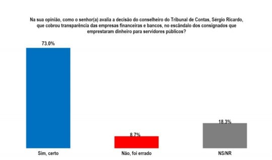O estudo também aponta que 73% da população entrevistada aprova a iniciativa do TCE-MT de promover mesa técnica para discutir o superendividamento de servidores públicos estaduais com empréstimos consignados e auditoria para esclarecer cobranças de juros, prestações e correçoes aplicadas por instituições financeiras. Para o presidente, os resultados da pesquisa demonstram a confiança da sociedade no papel do Tribunal de Contas como guardião da boa aplicação dos recursos públicos e promotor da transparência.