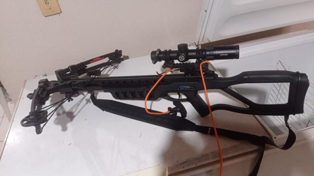 Foram apreendidos um rifle CBC 7022 de calibre 22, com carregador e mira red dot, dois revólveres Taurus de calibre 38, uma carabina calibre 44-40, uma carabina de pressão 5.5 Jade Pro, um binóculo com visão noturna, caixas contendo diversas pontas de projéteis, chumbos e outros insumos para recarga, entre outros objetos.