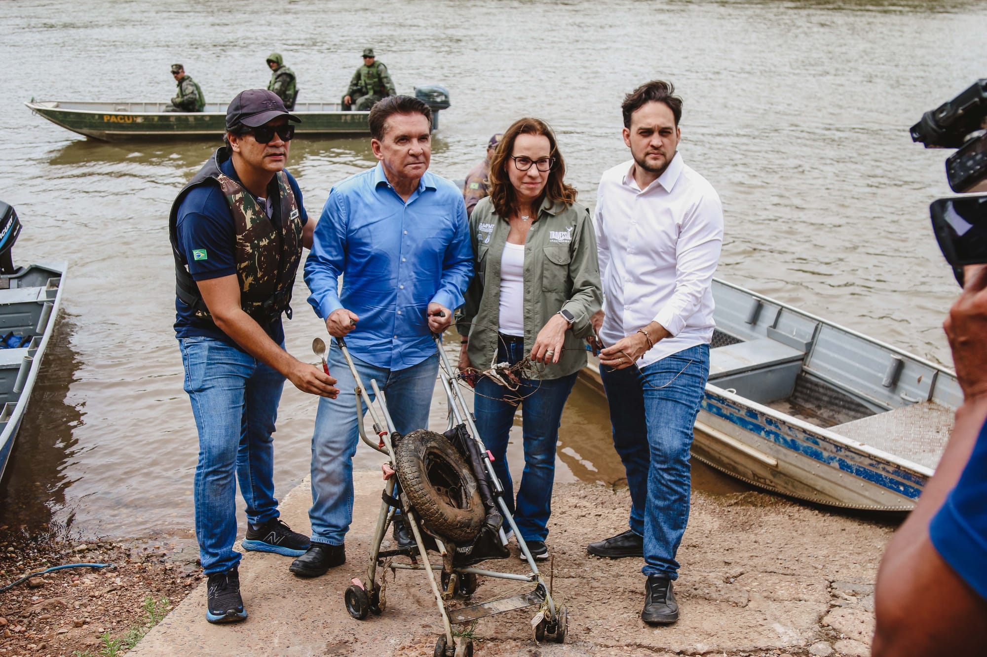 A ação realizada pela manhã teve como foco a coleta de resíduos nas comunidades próximas ao Rio Cuiabá, incluindo materiais como colchões, televisores, plásticos e vidros. A programação começou em Cuiabá, com visita técnica à Ecobarreira e coleta por barco no trecho urbano do rio. Em seguida, a comitiva seguiu para Santo Antônio de Leverger, onde participou da mobilização na comunidade Varginha.
