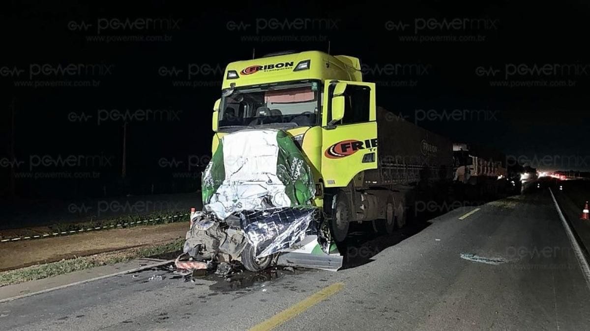 Um grave acidente matou o motorista Clésio Cruz Soares, de 44 anos, na noite de sexta-feira (7), na BR-163, próximo ao pedágio de Lucas do Rio Verde (a 354 km de Cuiabá). O carro conduzido por ele ficou completamente destruído após ser prensado em um engavetamento com duas carretas. Clésio morreu na hora, preso às ferragens.