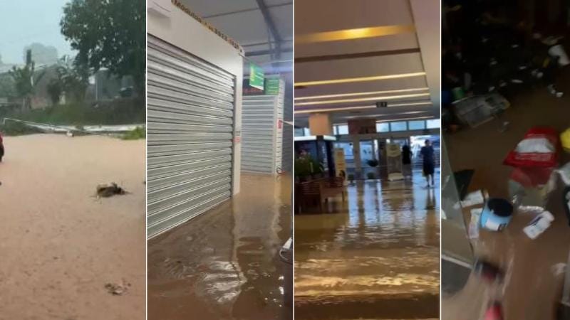 Em vídeos que circulam nas redes sociais é possível ver o desespero dos empresários que tem box no local, com a água entrando e arrastando produtos. Os corredores no shopping ficaram completamente alagados.